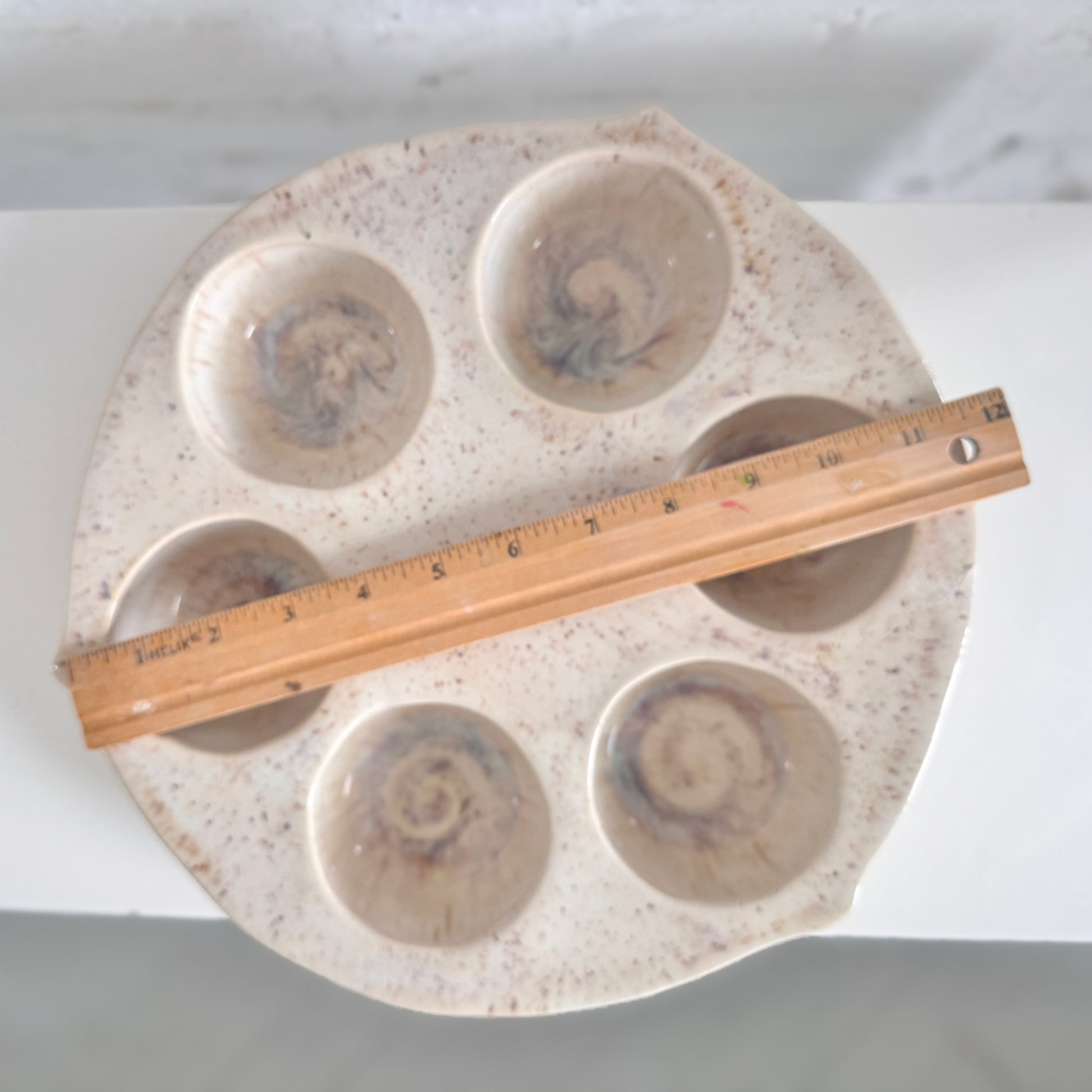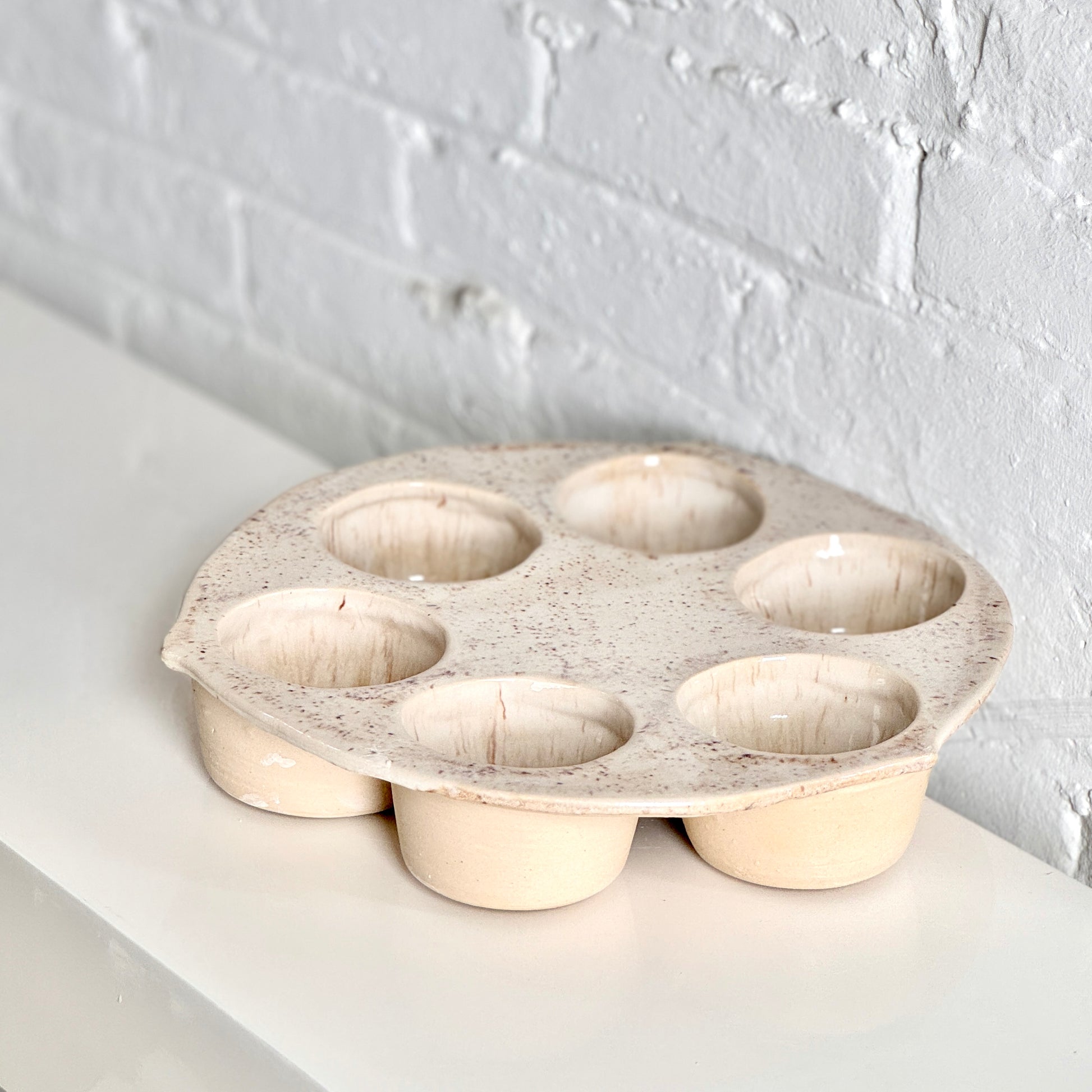 Introducing our beautiful hand-built ceramic muffin/cupcake pan, designed to elevate your baking experience to a whole new level! This stunning pan features a speckled white glaze that will add a touch of elegance to any kitchen, while the six perfectly-sized holes allow you to bake delicious muffins or cupcakes with ease.